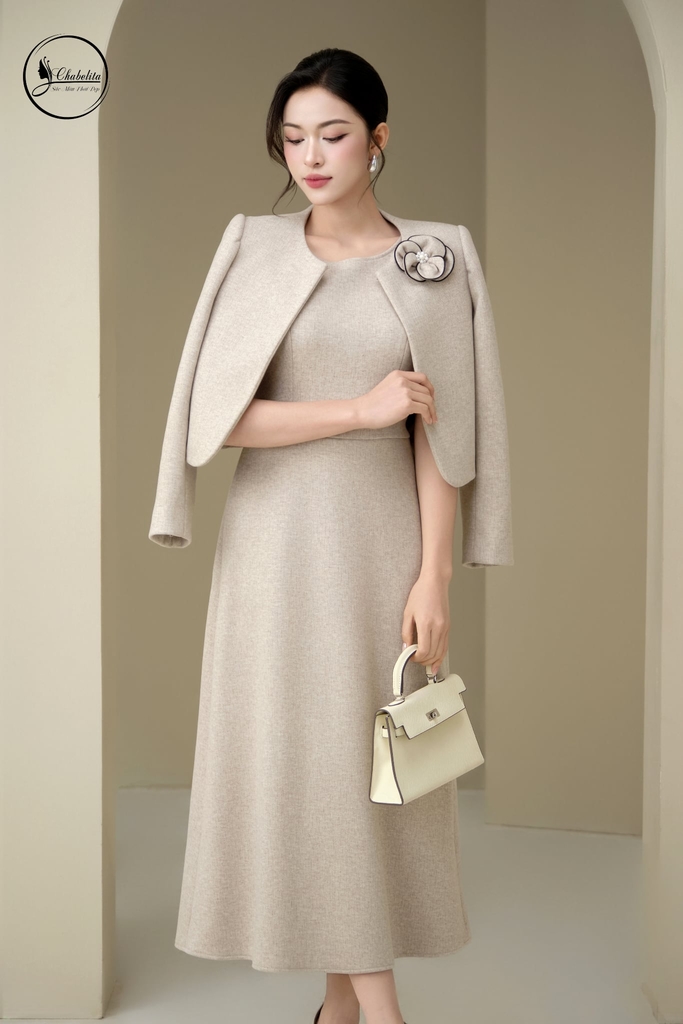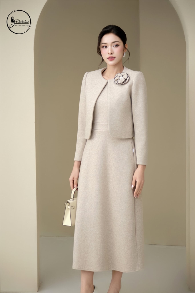 Áo vest cổ 3 phân phối màu be
