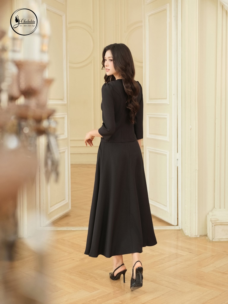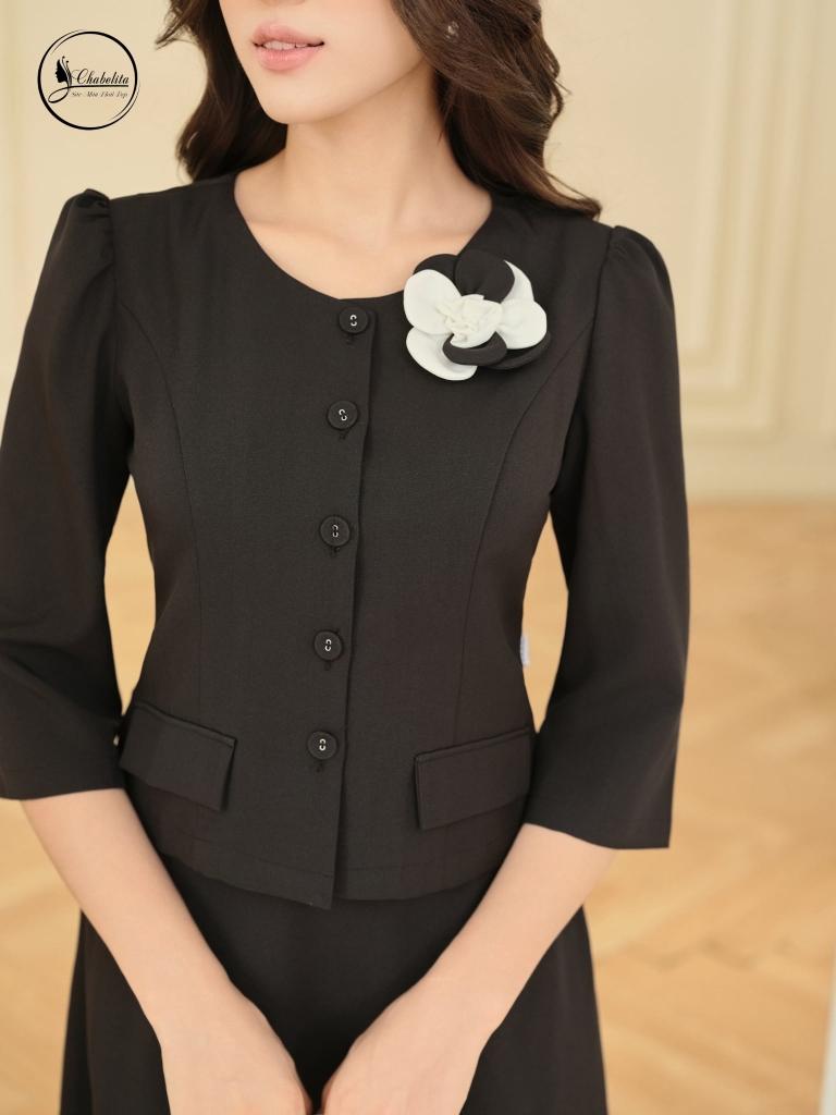 Sét bộ tay lỡ cổ tròn đính hoa màu đen
