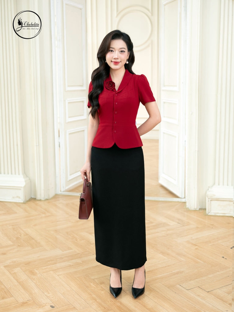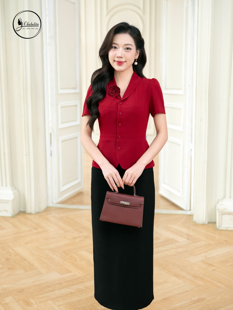 Áo sơ mi tay lỡ cổ tròn đính hoa màu trắng