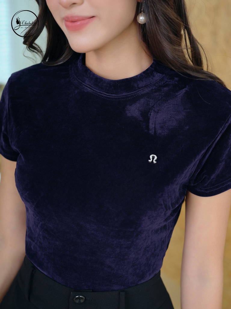 Áo nhung cổ 3 phân màu xanh than