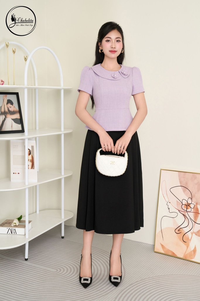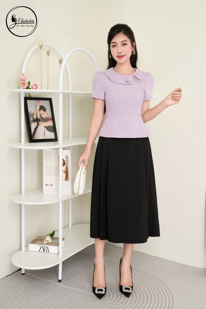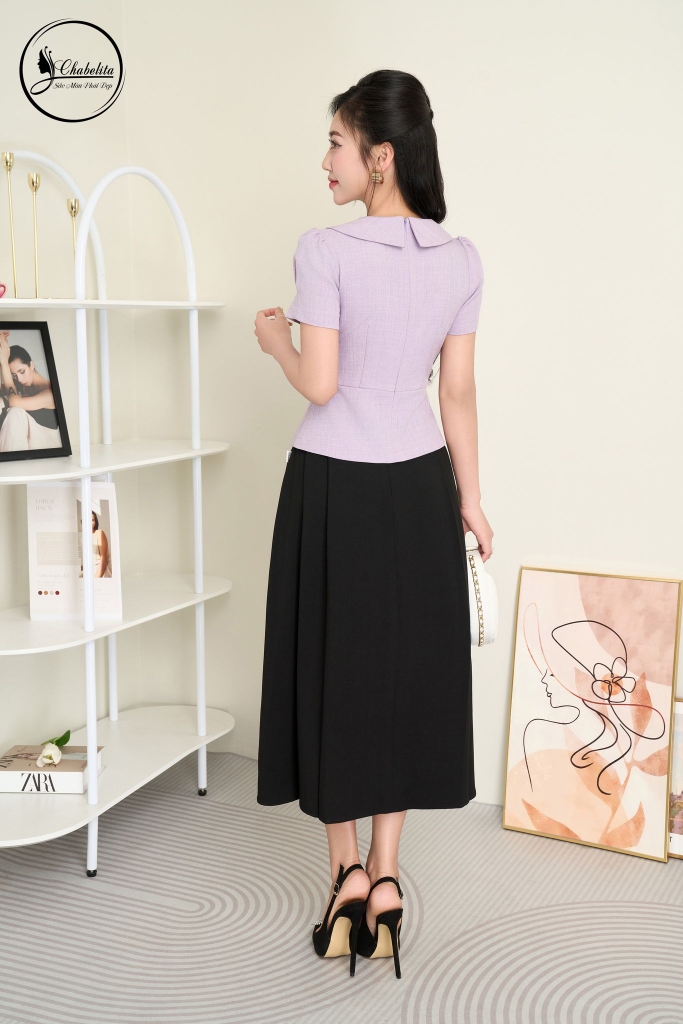 Áo sơ mi cổ phối màu tím