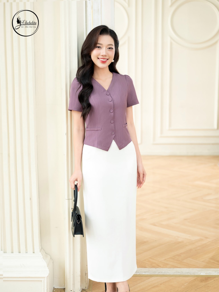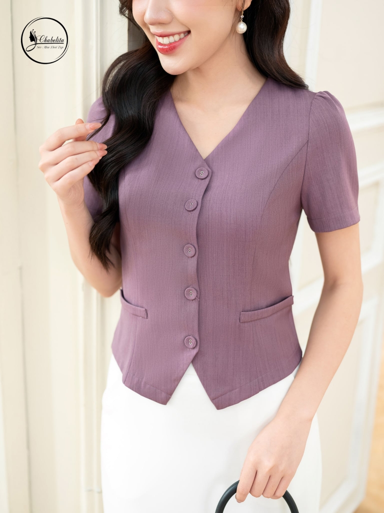 Áo sơ mi tay lỡ cổ tròn đính hoa màu trắng