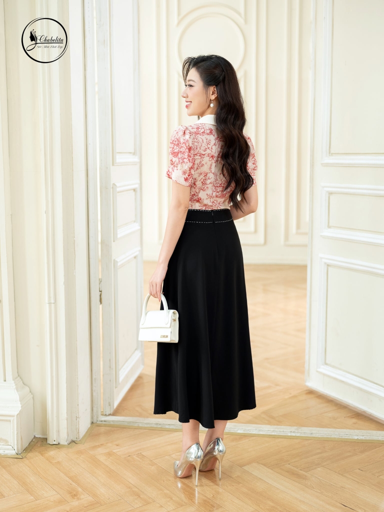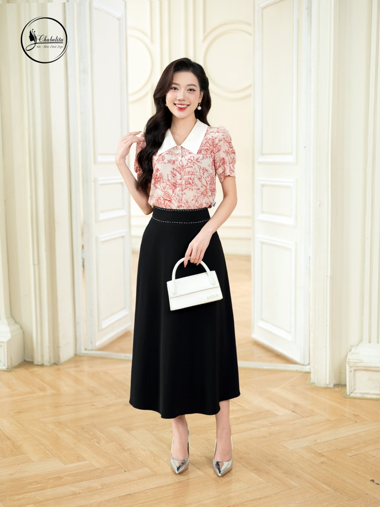 Áo sơ mi tay lỡ cổ tròn đính hoa màu trắng