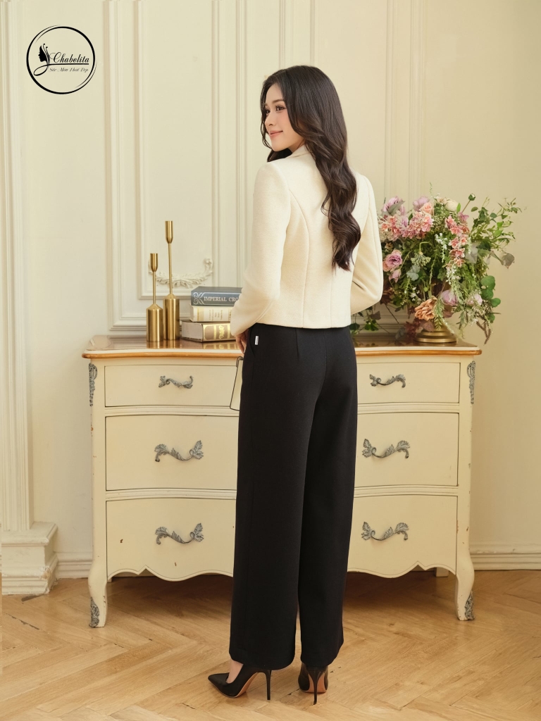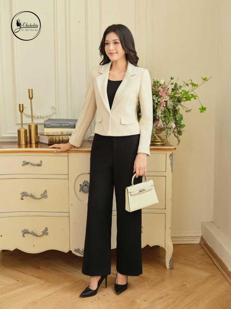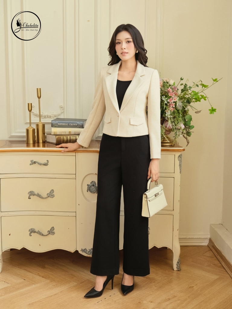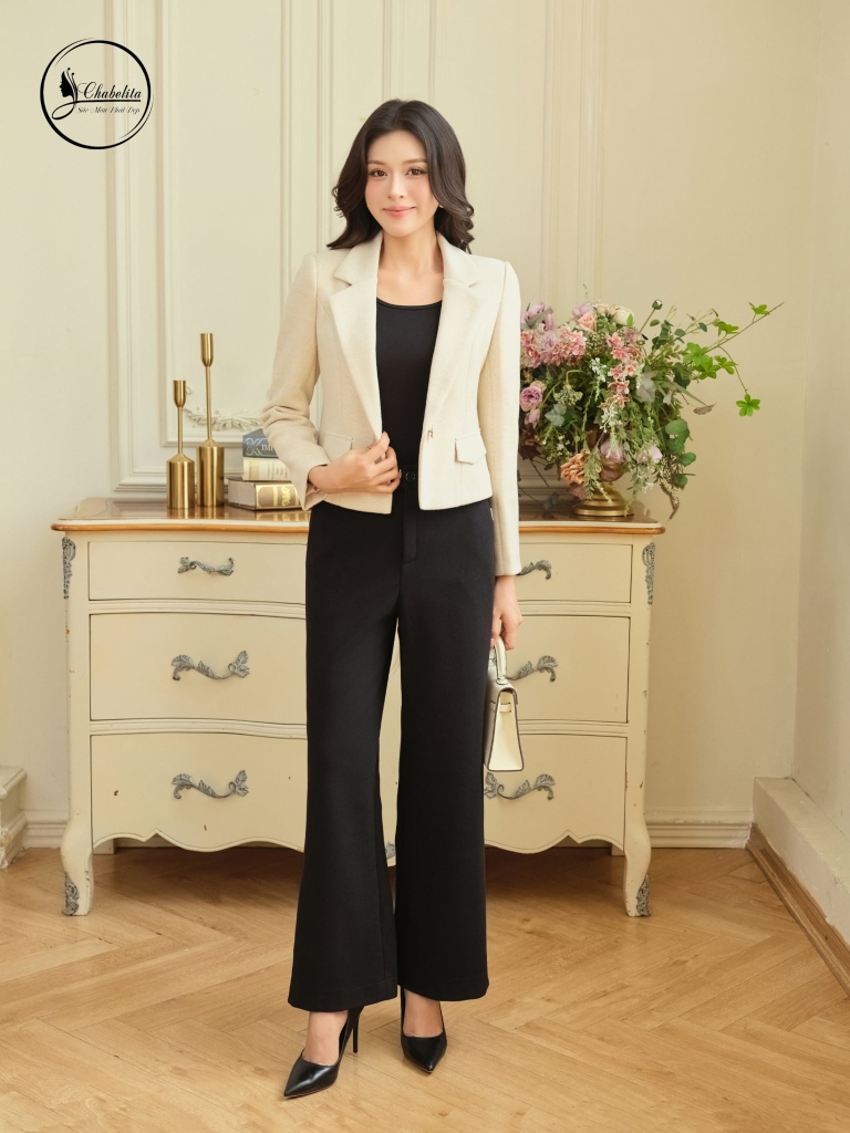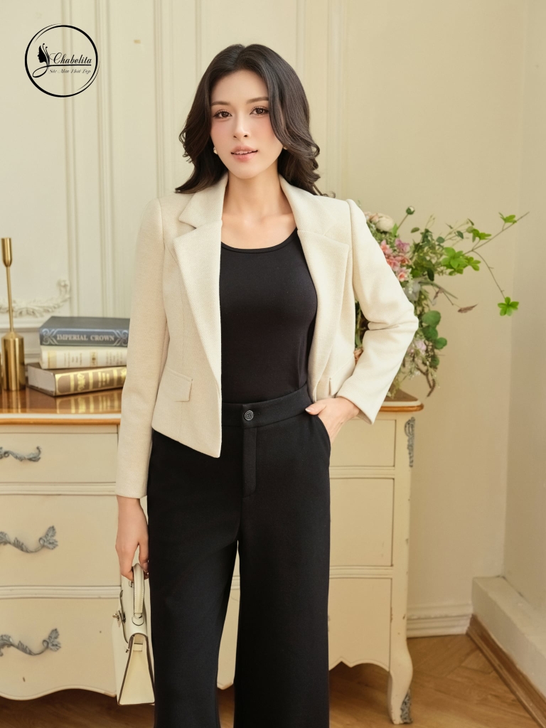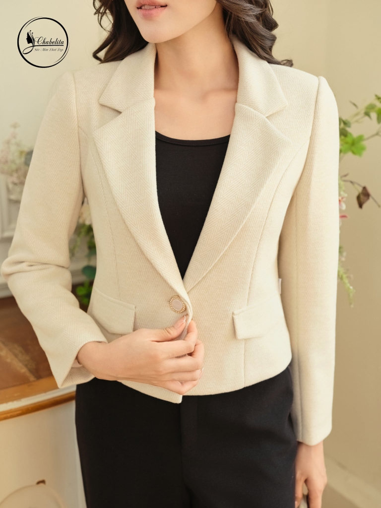 Áo vest dài tay 1 khuy màu be