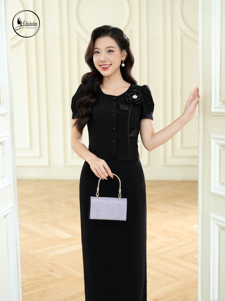 Sét bộ áo sơ mi phối chân váy màu ghi chì