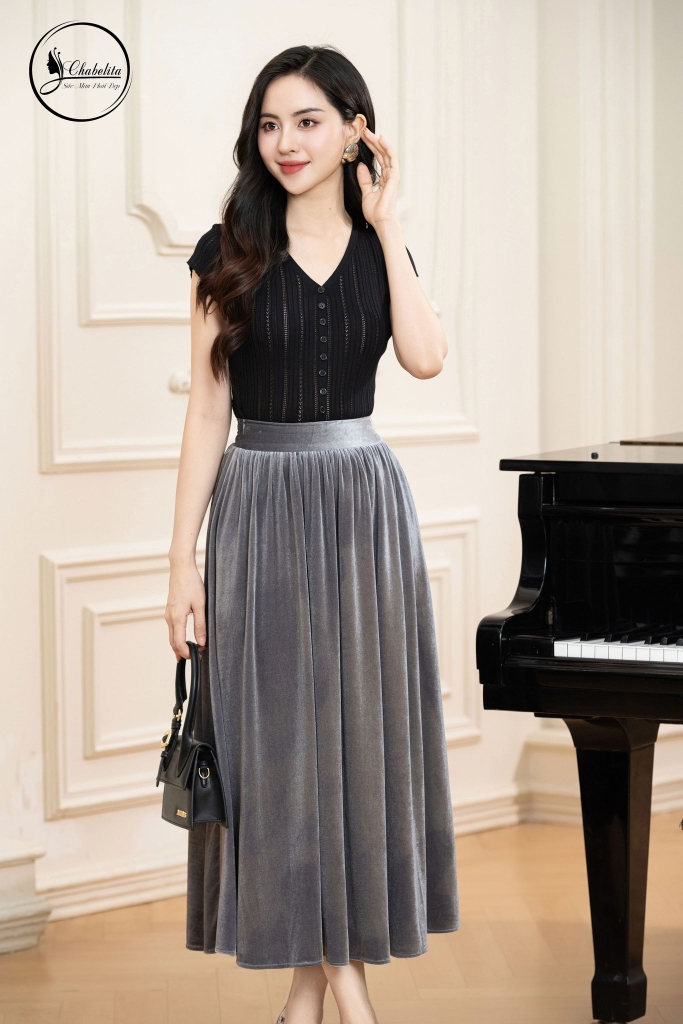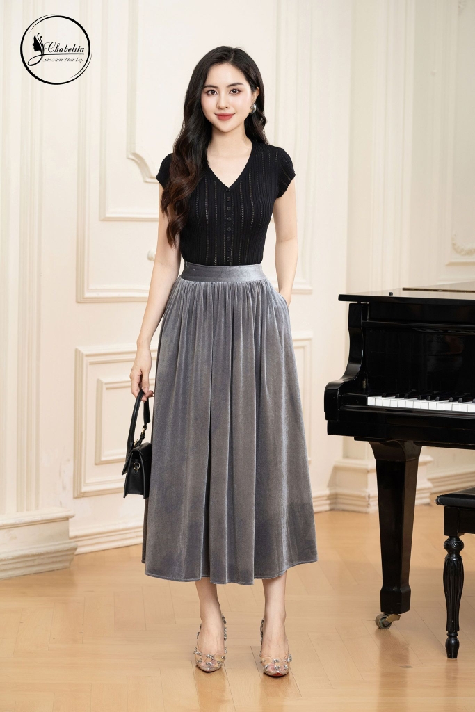Chân váy xòe màu đen