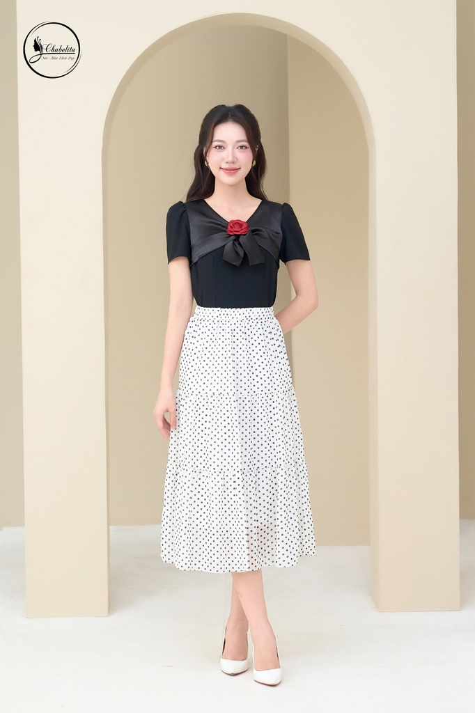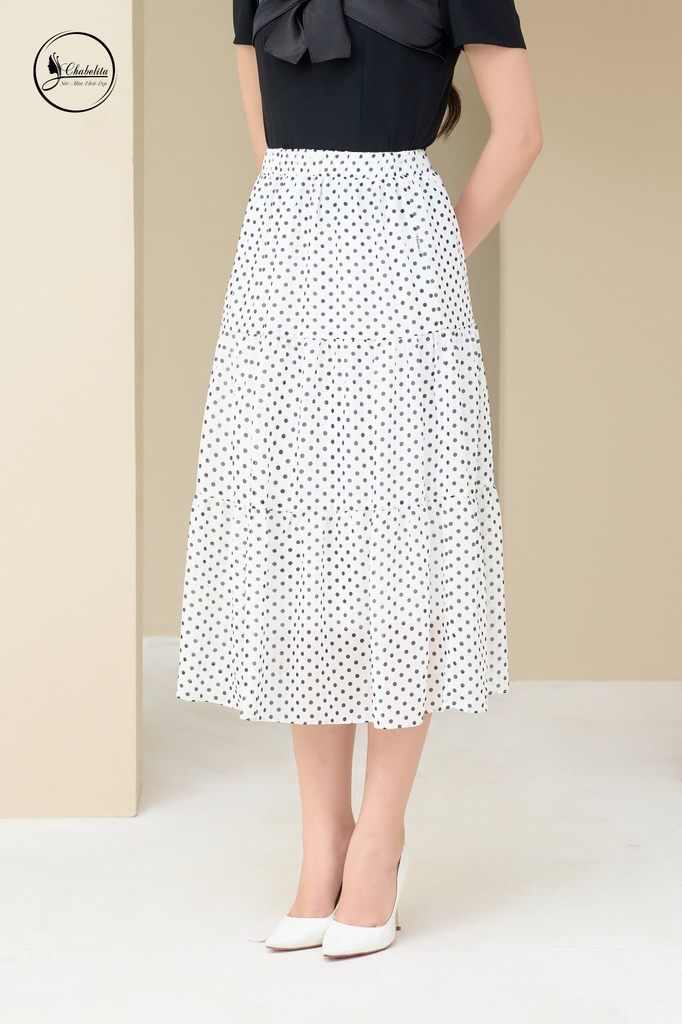 Chân váy chấm bi 3 tầng màu trắng