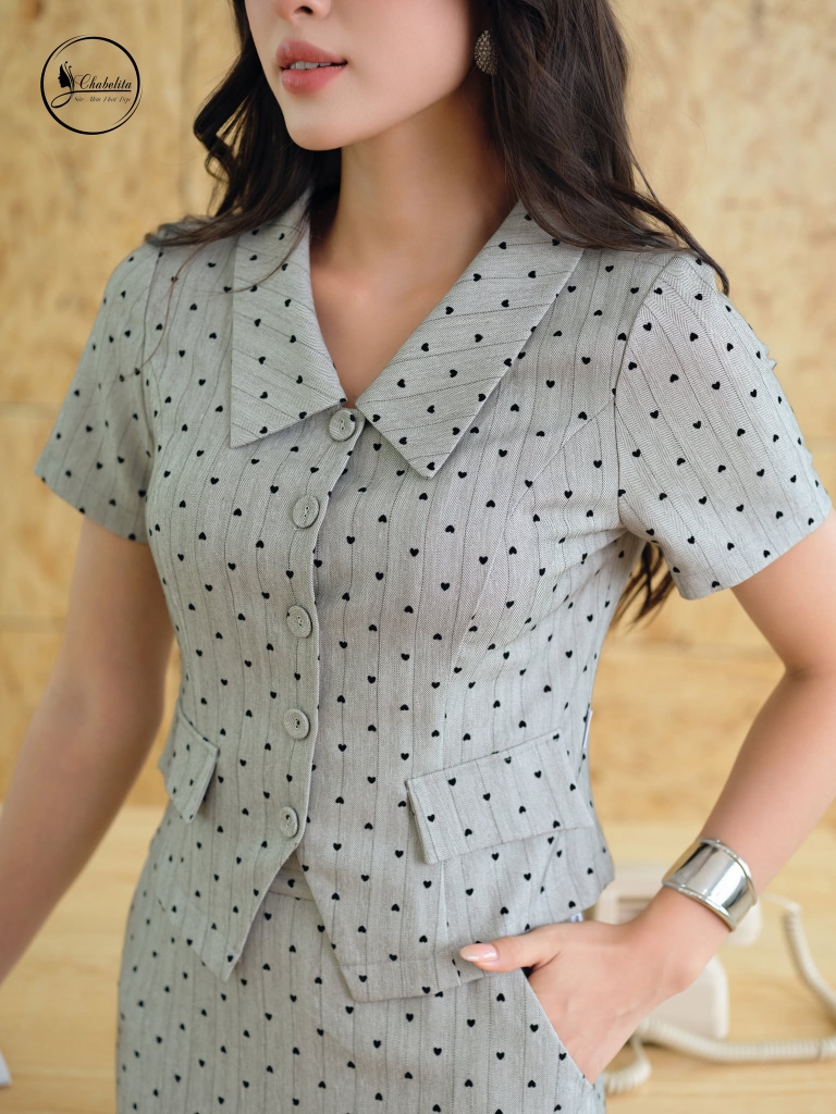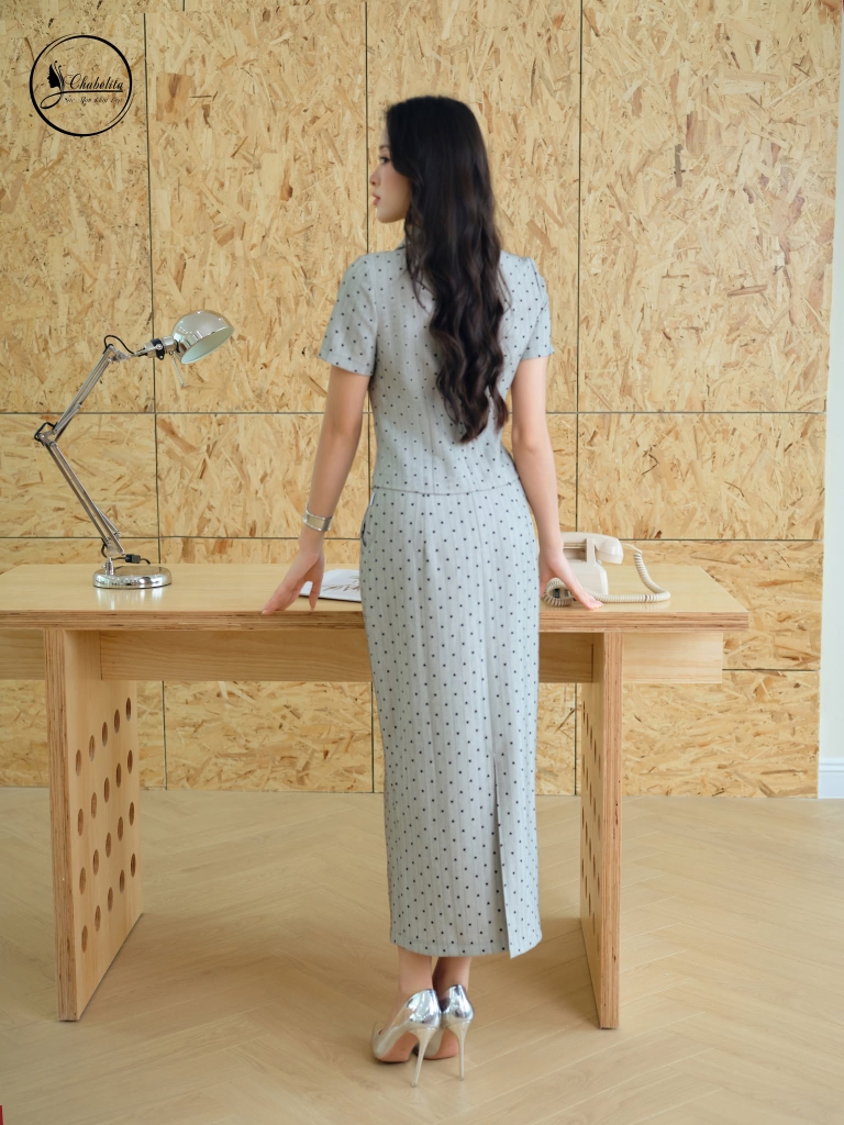 Sét bộ áo sơ mi phối chân váy màu ghi chì