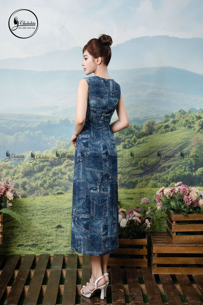 Đầm sát nách họa tiết đính nơ