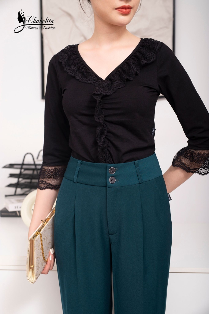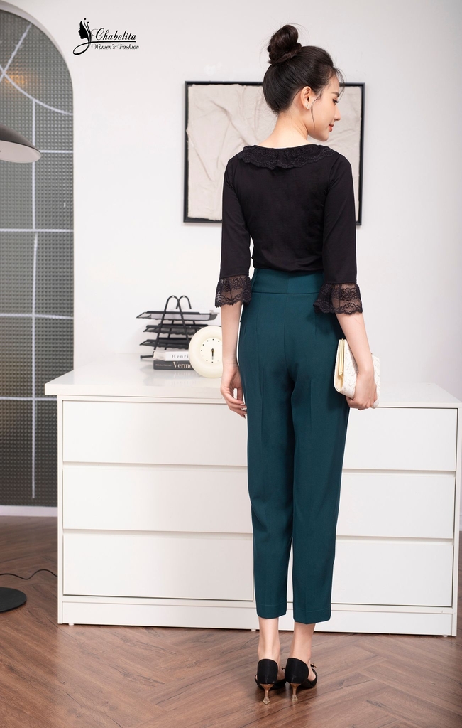 Quần baggy 1 ly cạp 2 cúc màu đen