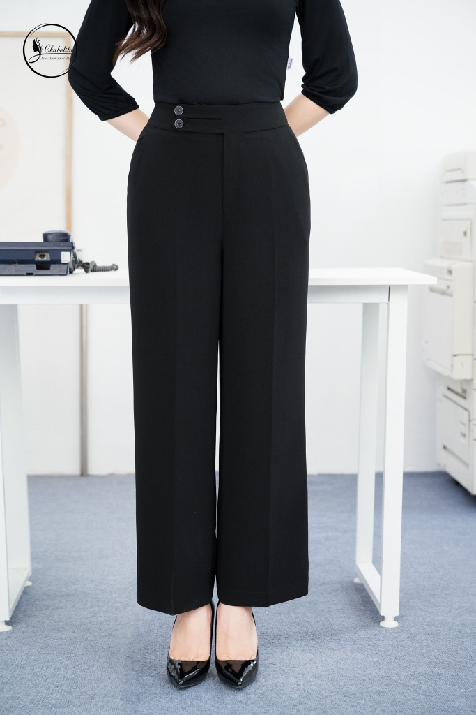 Quần suông cạp cao 3 khuy màu đen
