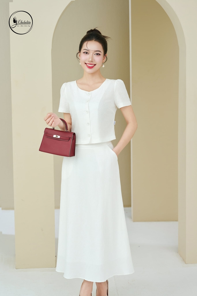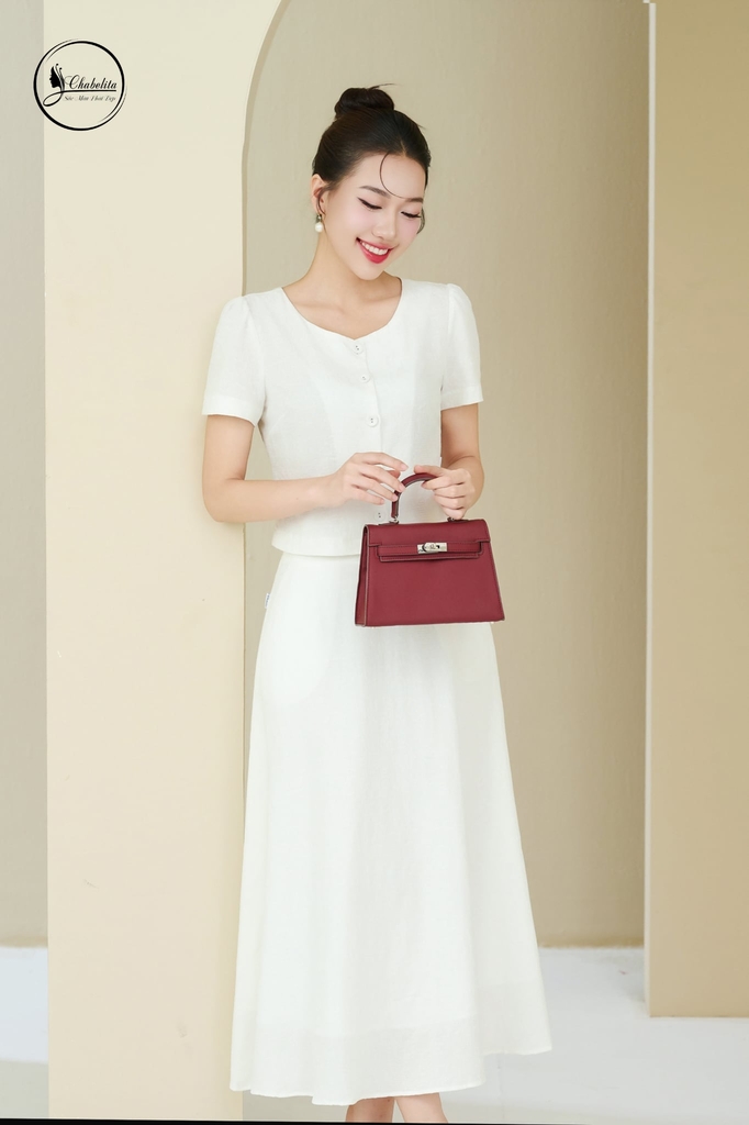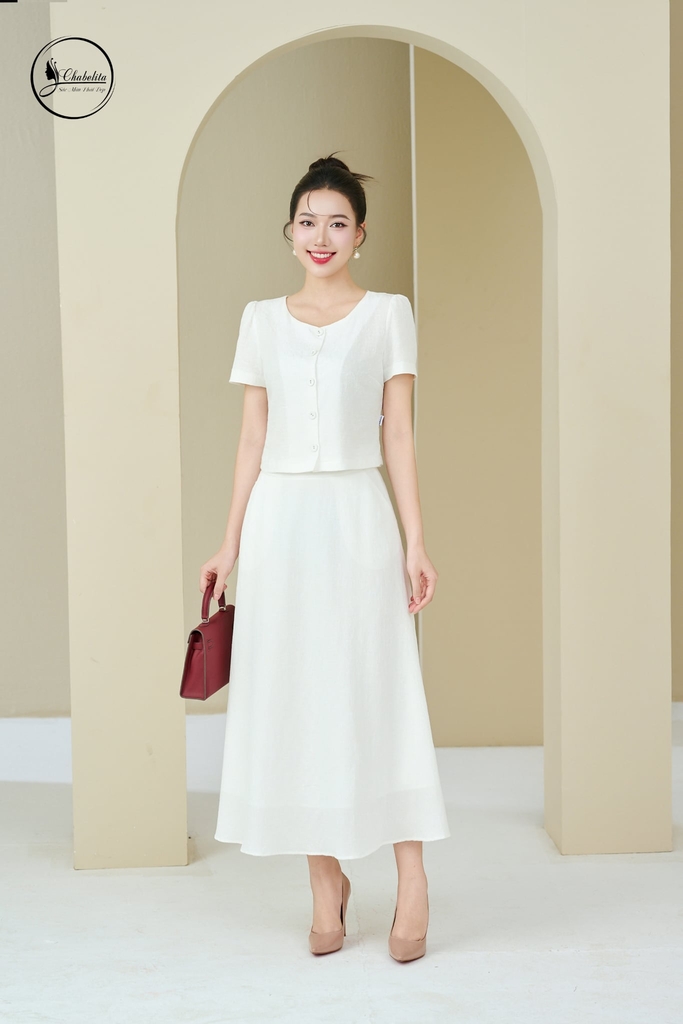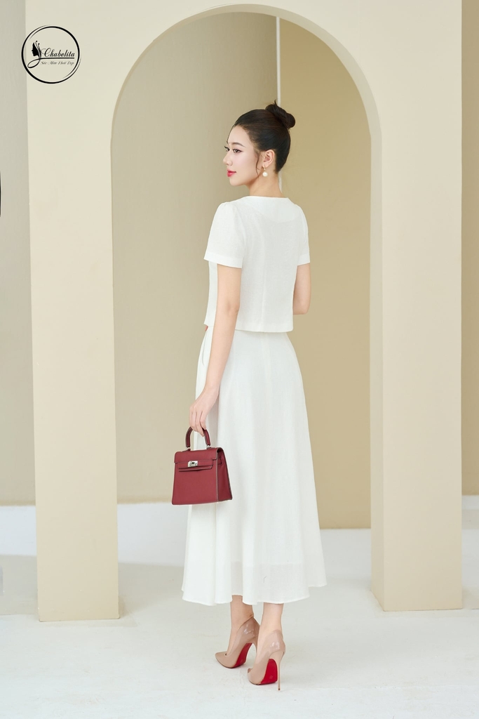 Sét bộ áo phối chân váy màu trắng