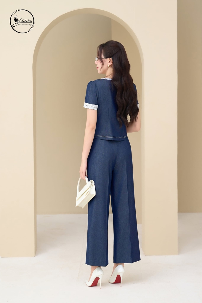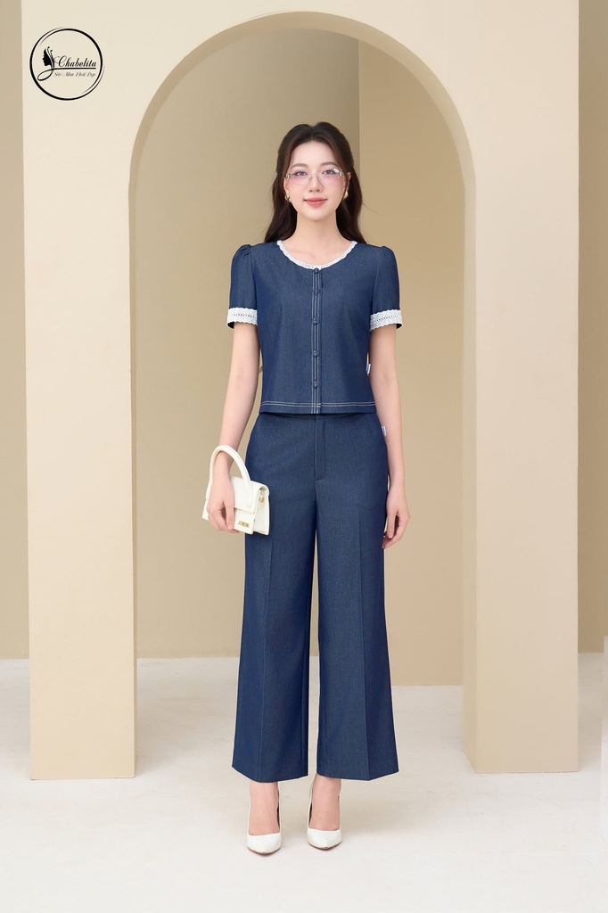 Sét bộ áo tay lỡ cổ phối màu ghi đậm